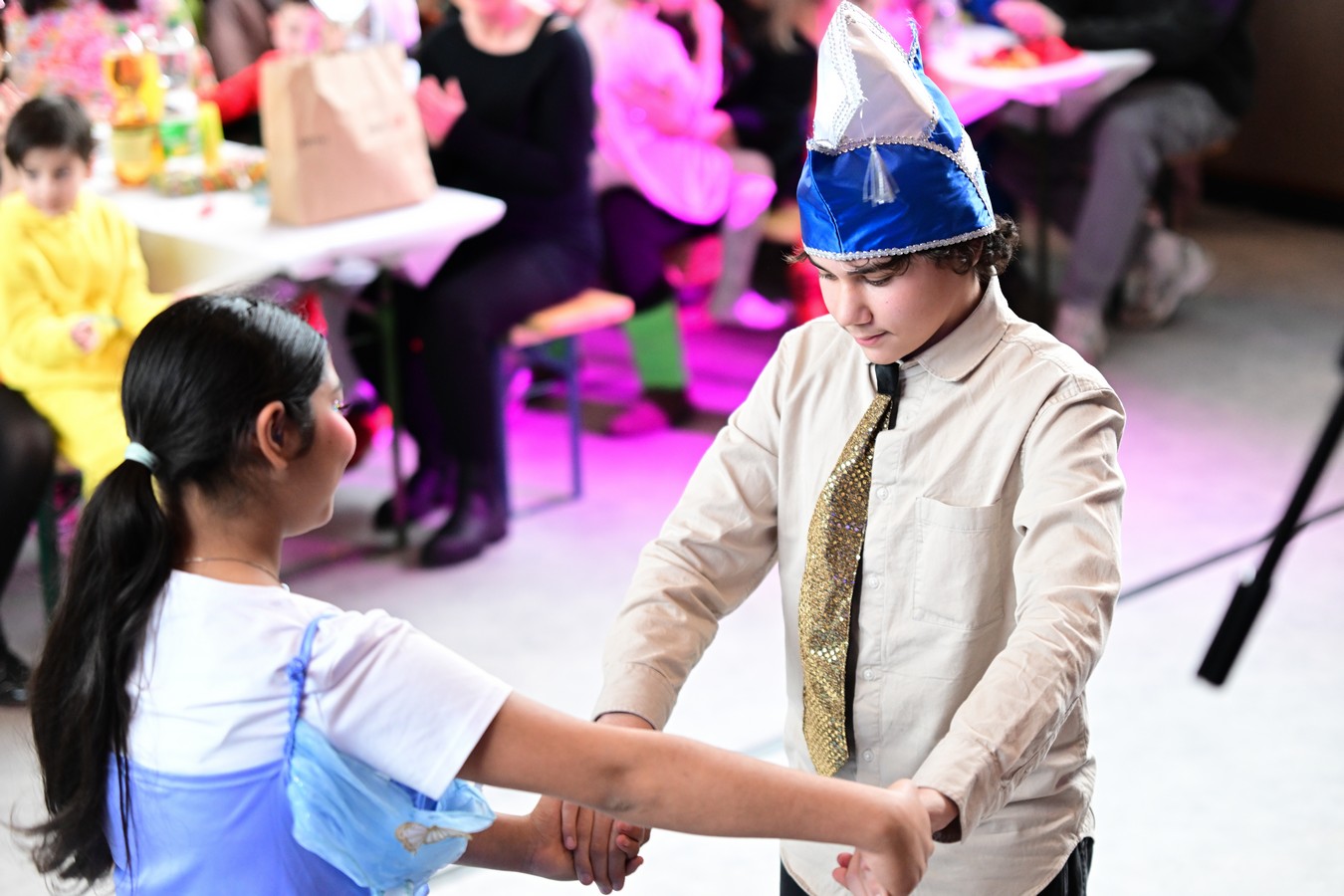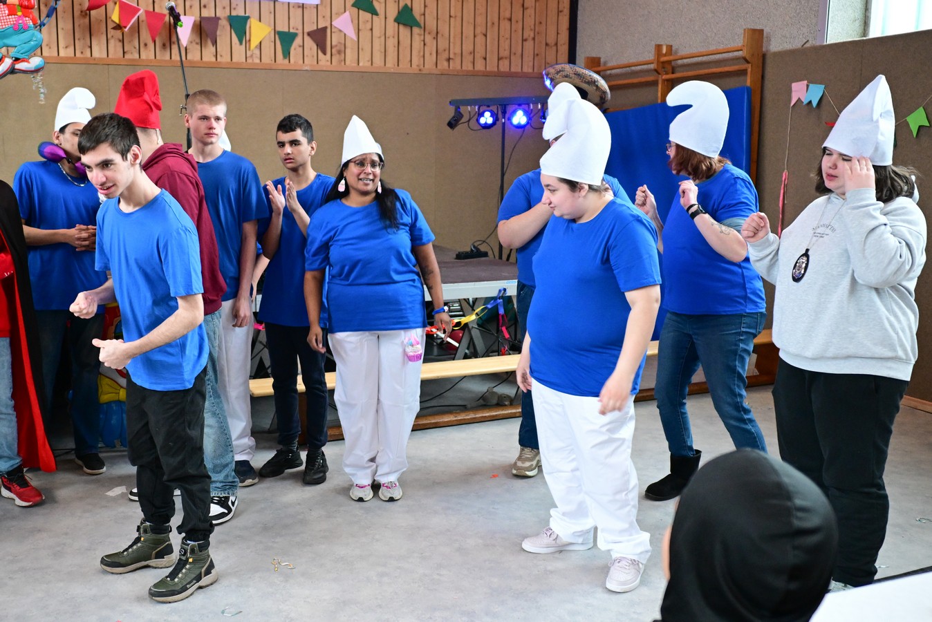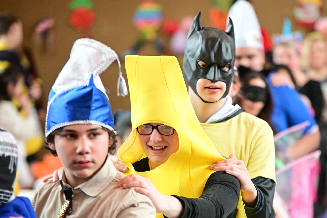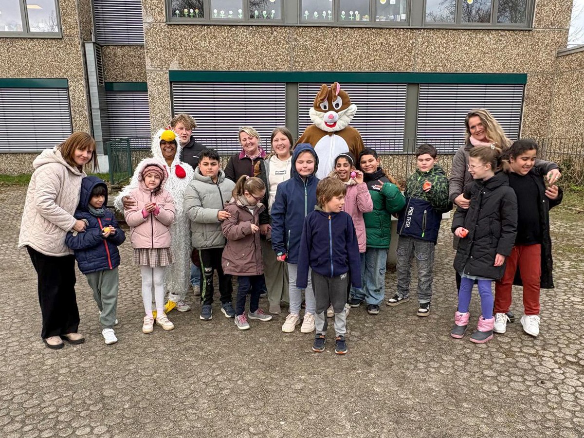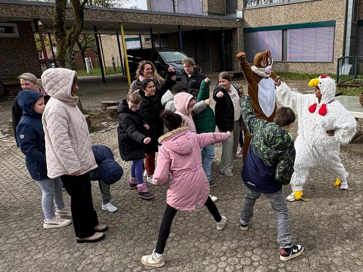 Pünktlich um 10.11 Uhr begann am Faschingsfreitag unsere Karnevalsfeier in der Sporthalle am Standort Harsewinkel. Mit dem feierlichen Einzug unseres Prinzenpaares Merem I. und Lukas I. wurde der närrische Morgen schwungvoll eröffnet. Schon nach wenigen Minuten war die Halle erfüllt von fröhlicher Karnevalsmusik, bunten Kostümen und ganz viel guter Laune.Mehrere Klassen hatten kleine Aktionen vorbereitet und sorgten damit für Abwechslung, Applaus und strahlende Gesichter. Es wurde gesungen, getanzt und gelacht – und die gute Laune war überall spürbar. Man merkte schnell: Heute steht der Schulalltag Kopf und das Herz schlägt im Takt der Musik.
