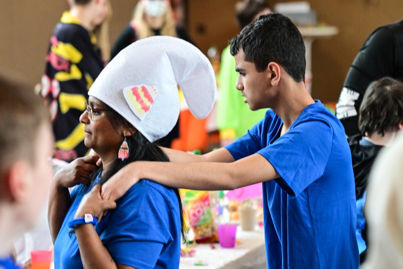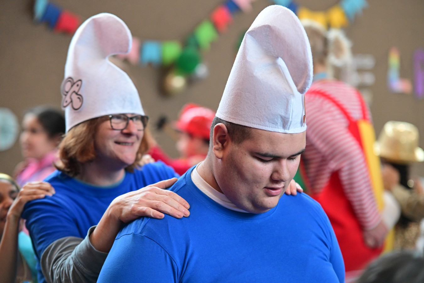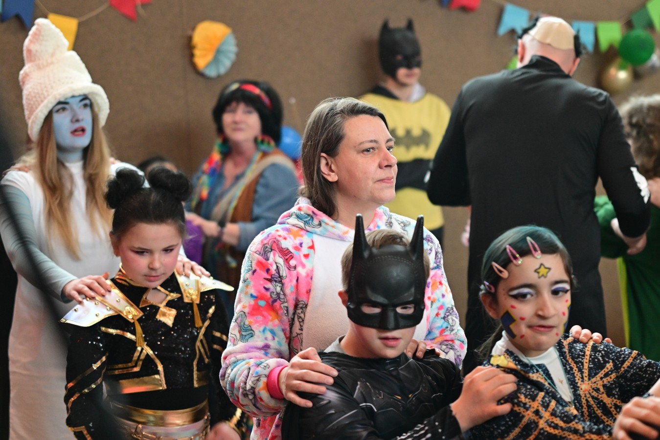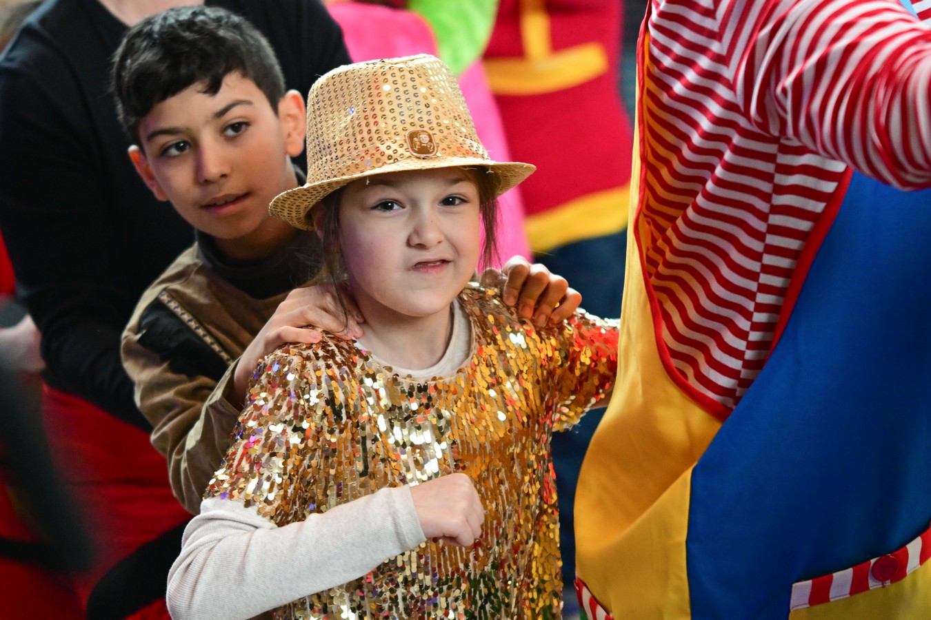 Pünktlich um 10.11 Uhr begann am Faschingsfreitag unsere Karnevalsfeier in der Sporthalle am Standort Harsewinkel. Mit dem feierlichen Einzug unseres Prinzenpaares Merem I. und Lukas I. wurde der närrische Morgen schwungvoll eröffnet. Schon nach wenigen Minuten war die Halle erfüllt von fröhlicher Karnevalsmusik, bunten Kostümen und ganz viel guter Laune.Mehrere Klassen hatten kleine Aktionen vorbereitet und sorgten damit für Abwechslung, Applaus und strahlende Gesichter. Es wurde gesungen, getanzt und gelacht – und die gute Laune war überall spürbar. Man merkte schnell: Heute steht der Schulalltag Kopf und das Herz schlägt im Takt der Musik.
