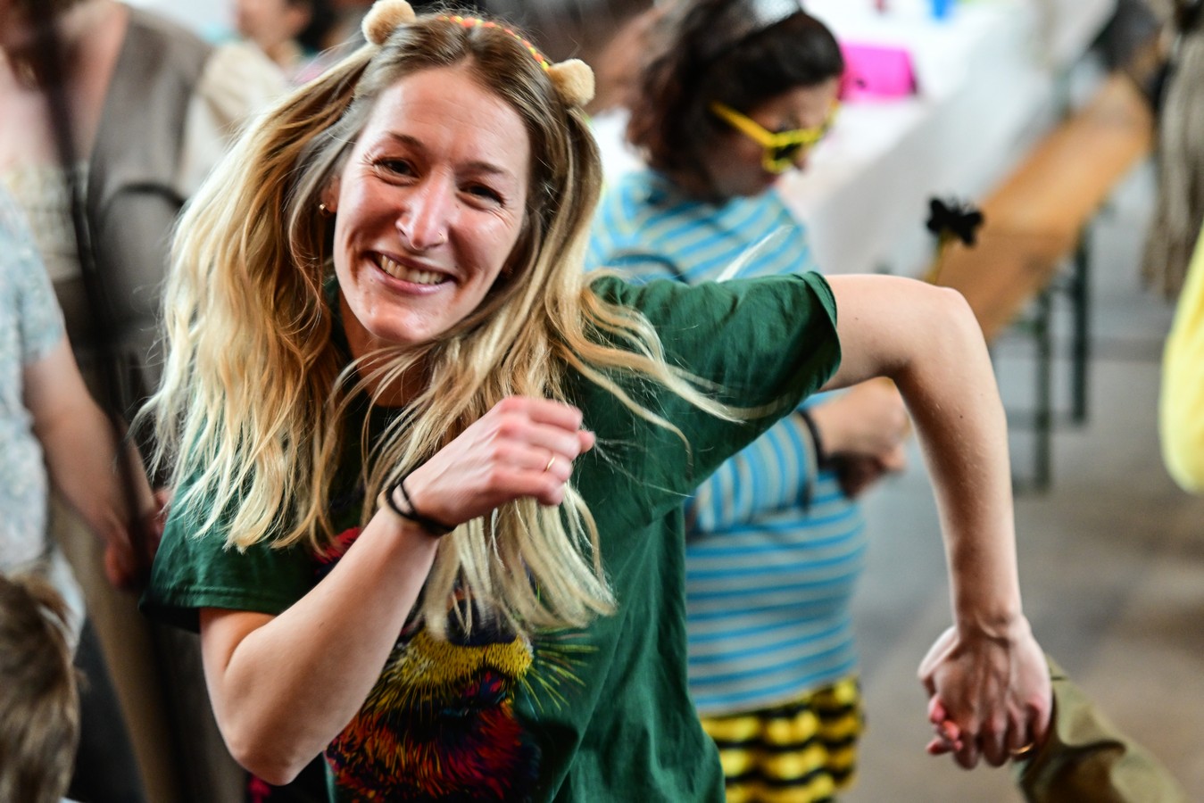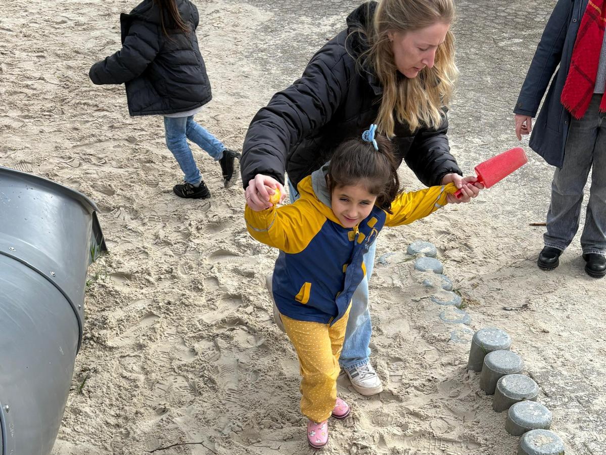 Weiter geht’s ins Abenteuerland – endlich Action! Schaukeln, toben, Bällebad! Und die Erwachsenen machen gleich mit. Einer nach dem anderen landet im Bällebad – meist mit einem kleinen, aber entschlossenen Schubser von Vincent.
