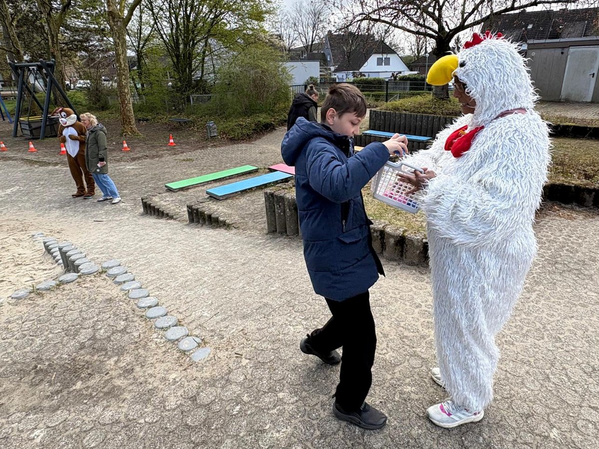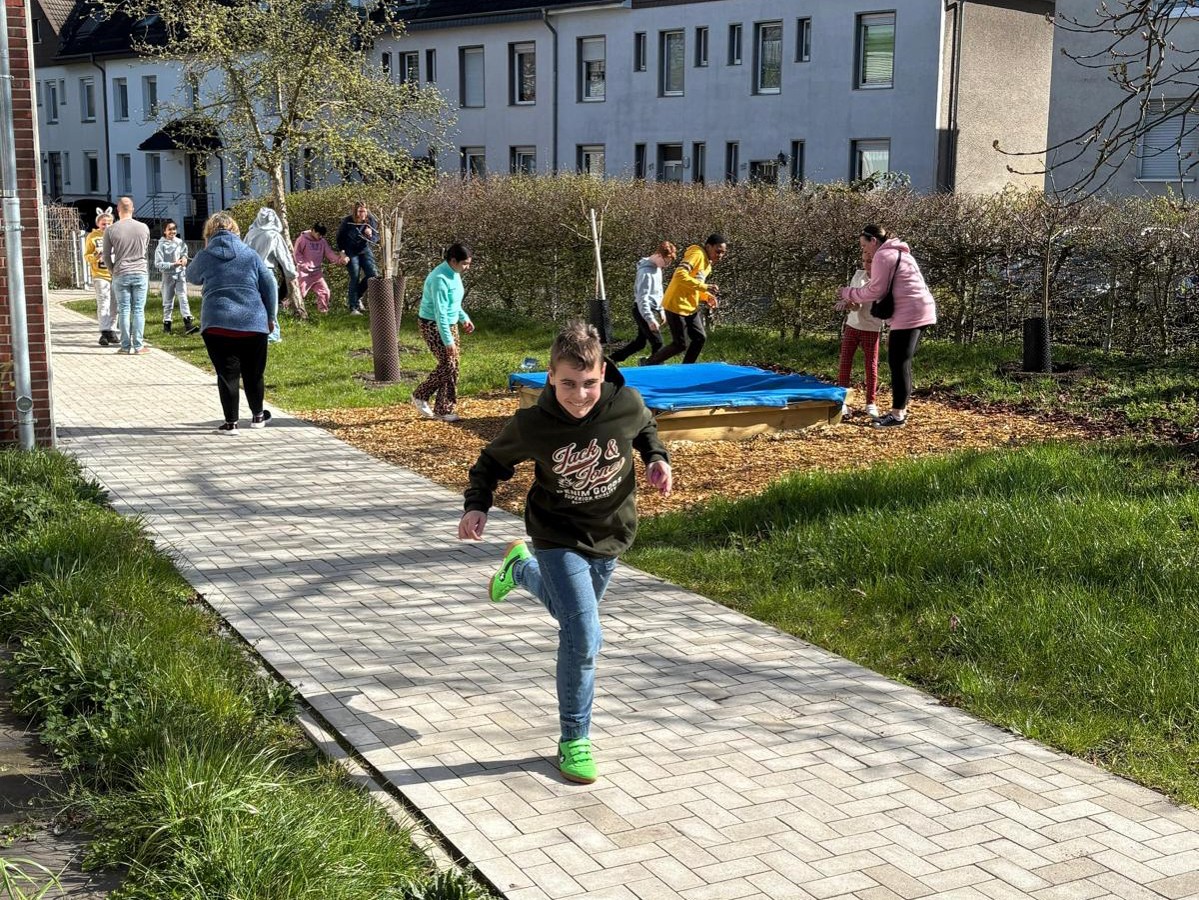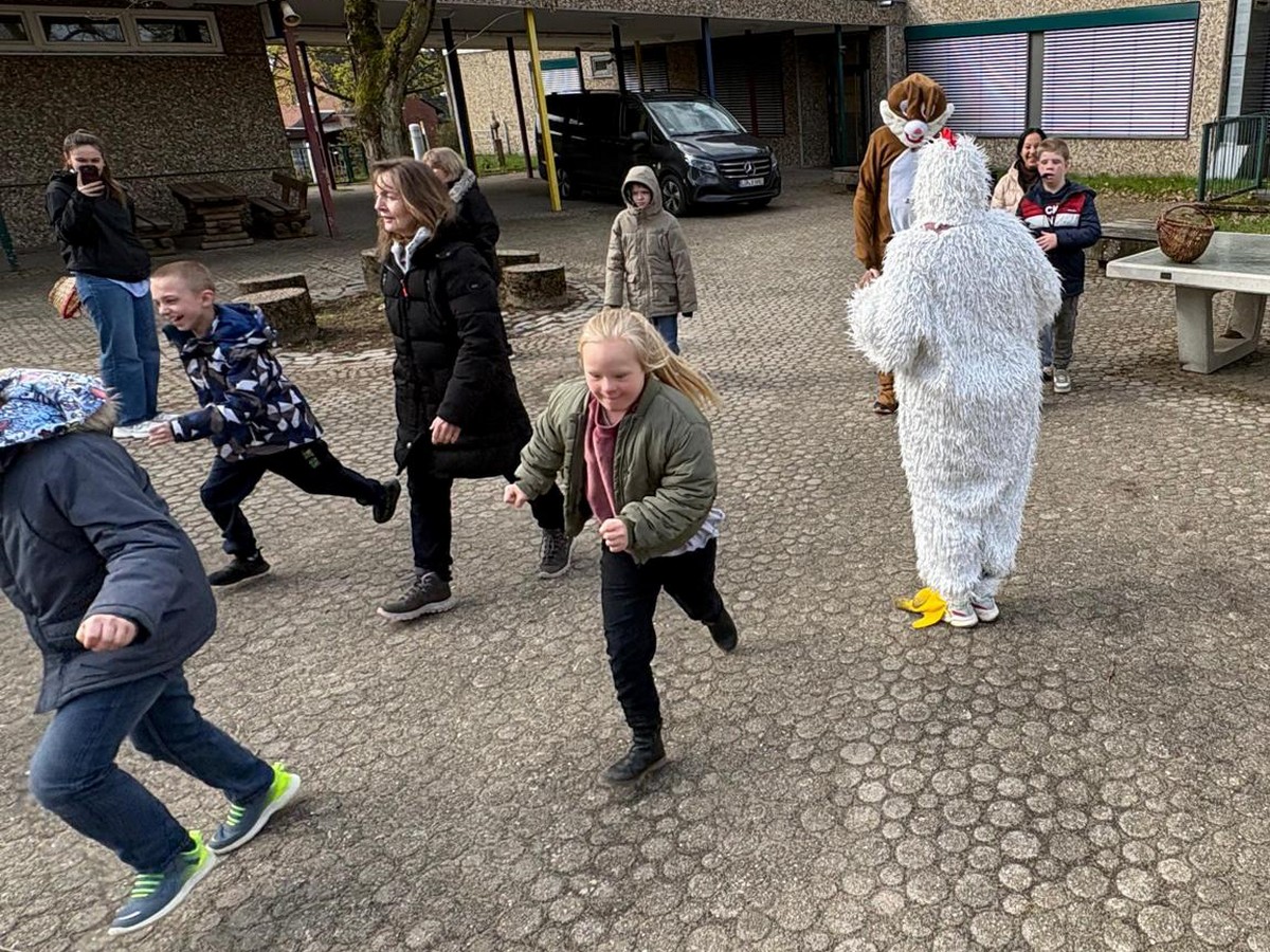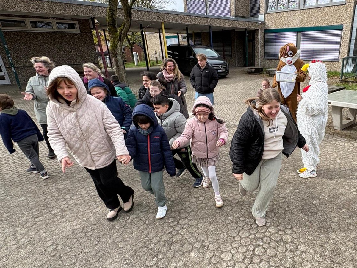 Auf dem Schulhof warten bereits der Bürgermeister der Stadt Dorsten Herr Stockhoff, Frau Winkels und Herr Spliethoff. Vincent freut sich riesig, den vertrauten Schulhof und das alte Gebäude wiederzusehen. Am liebsten würde er sofort losrennen und spielen, aber halt! Heute ist er schließlich auf Kinderbürgermeister-Mission unterwegs!