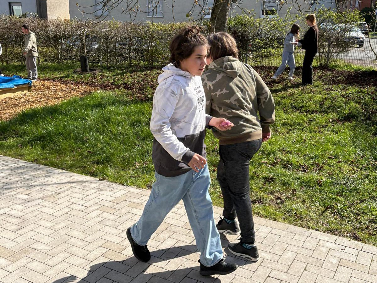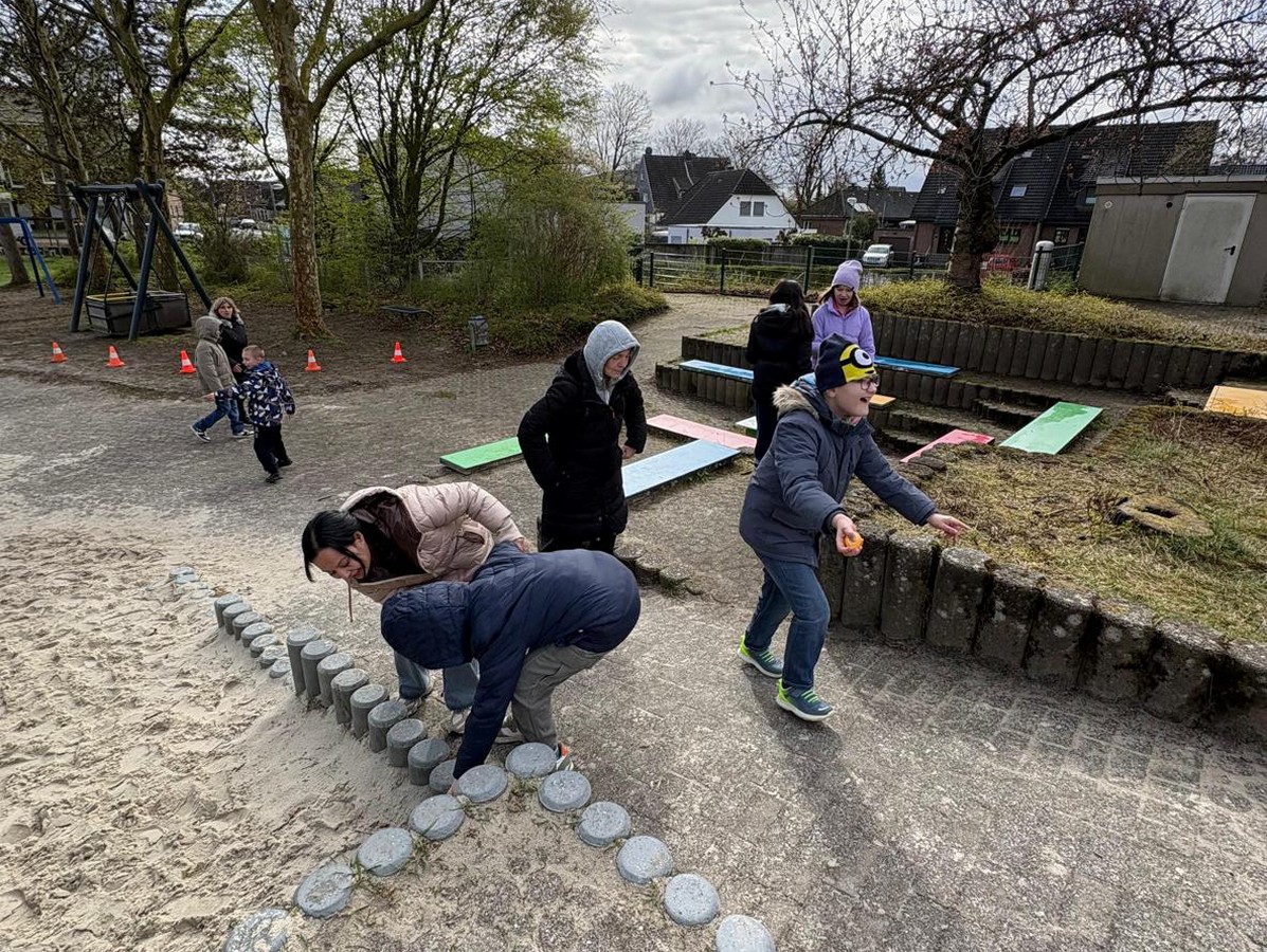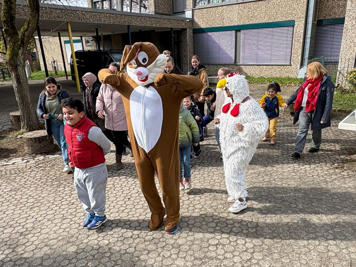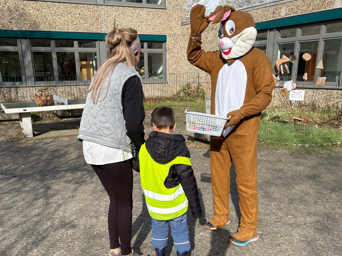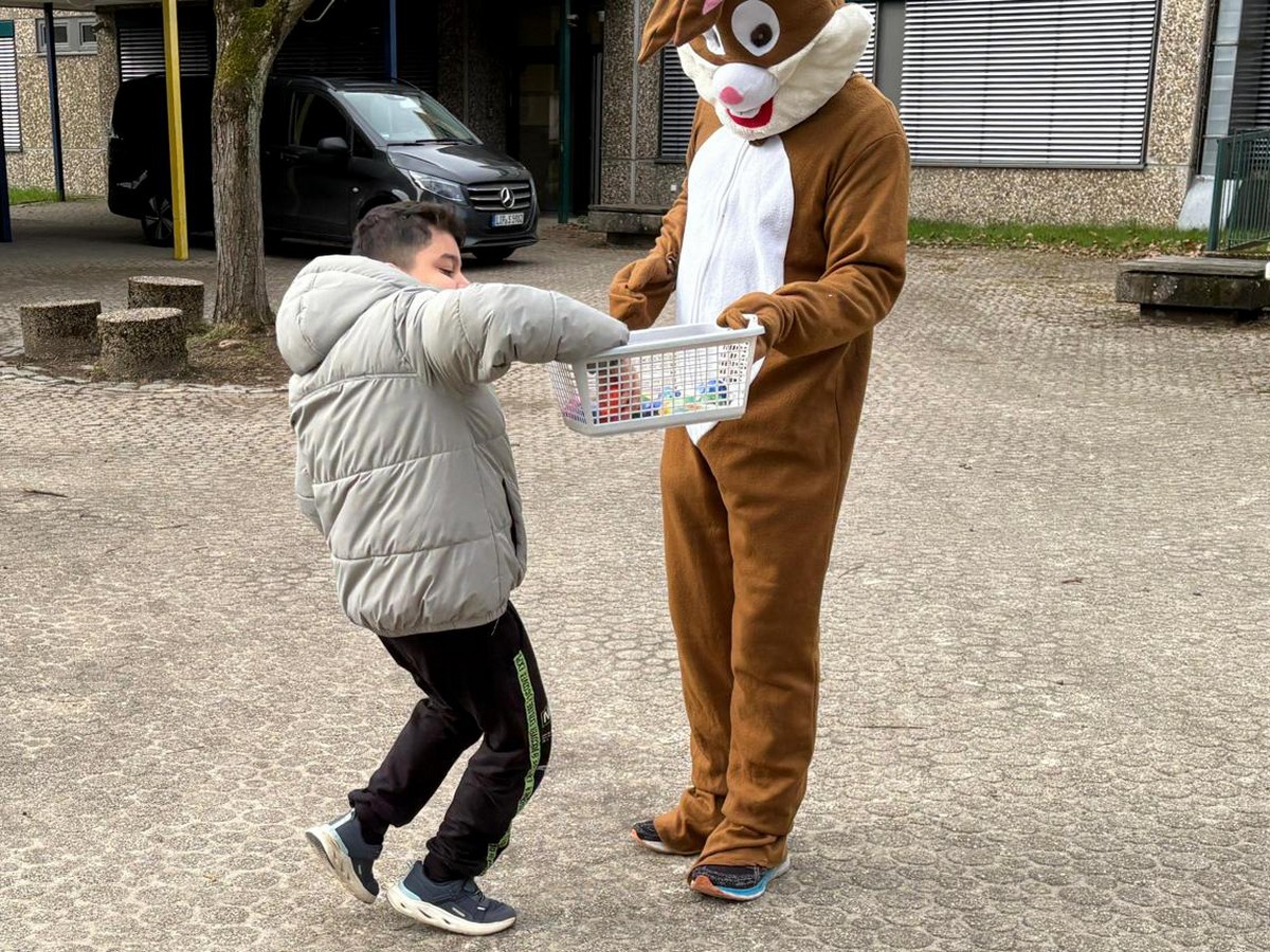 Auf dem Schulhof warten bereits der Bürgermeister der Stadt Dorsten Herr Stockhoff, Frau Winkels und Herr Spliethoff. Vincent freut sich riesig, den vertrauten Schulhof und das alte Gebäude wiederzusehen. Am liebsten würde er sofort losrennen und spielen, aber halt! Heute ist er schließlich auf Kinderbürgermeister-Mission unterwegs!