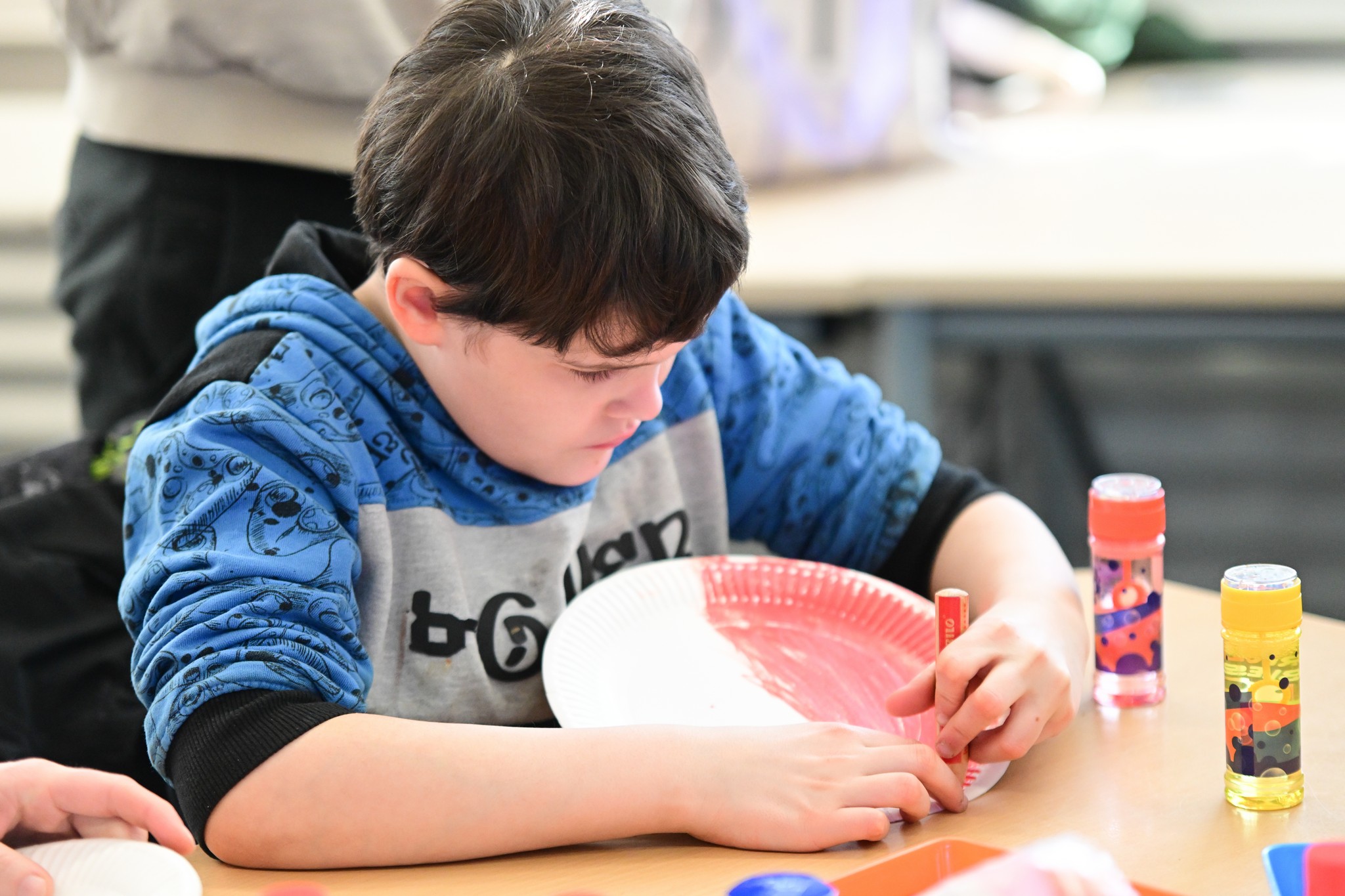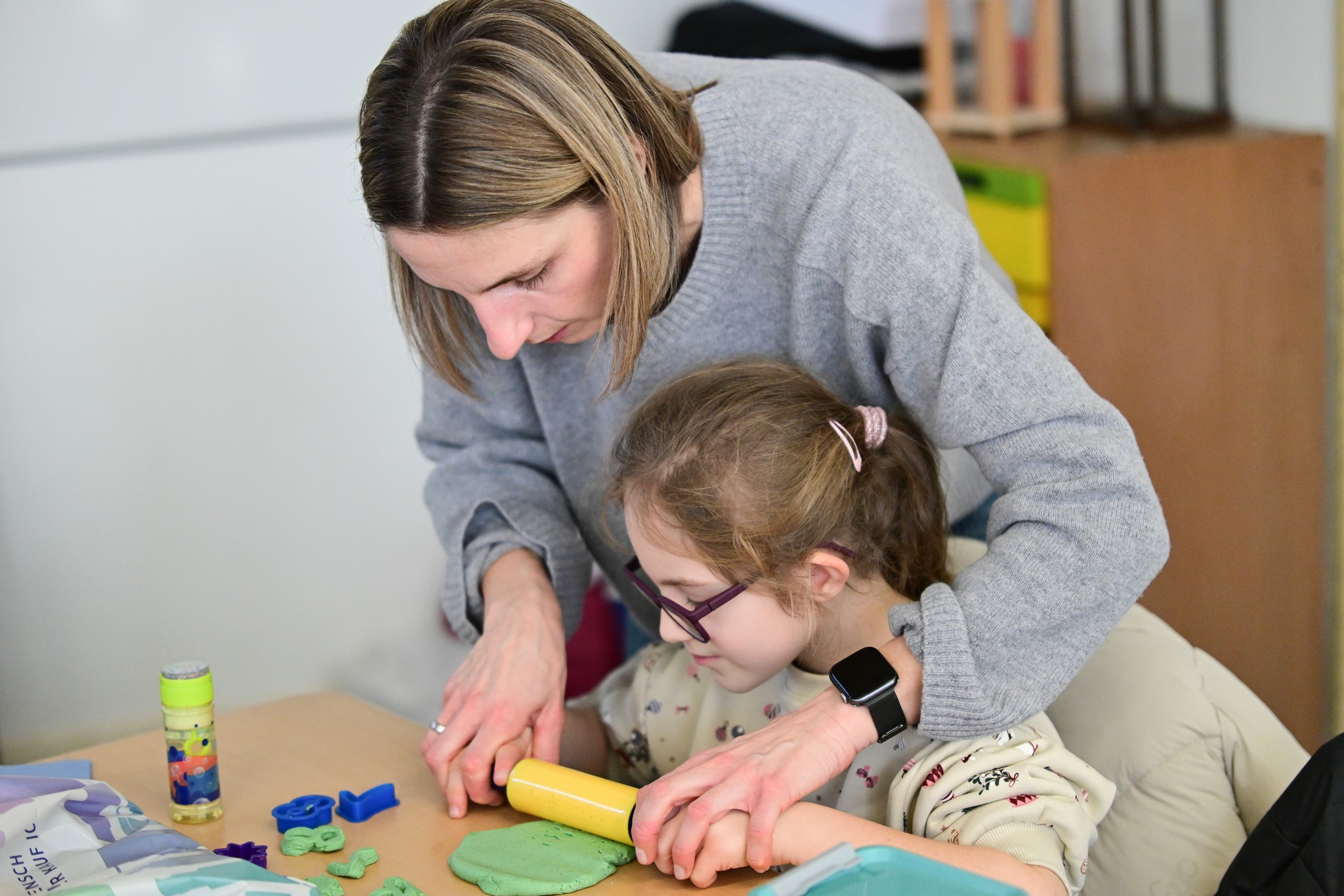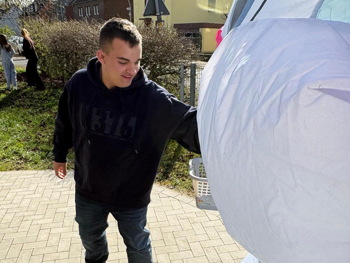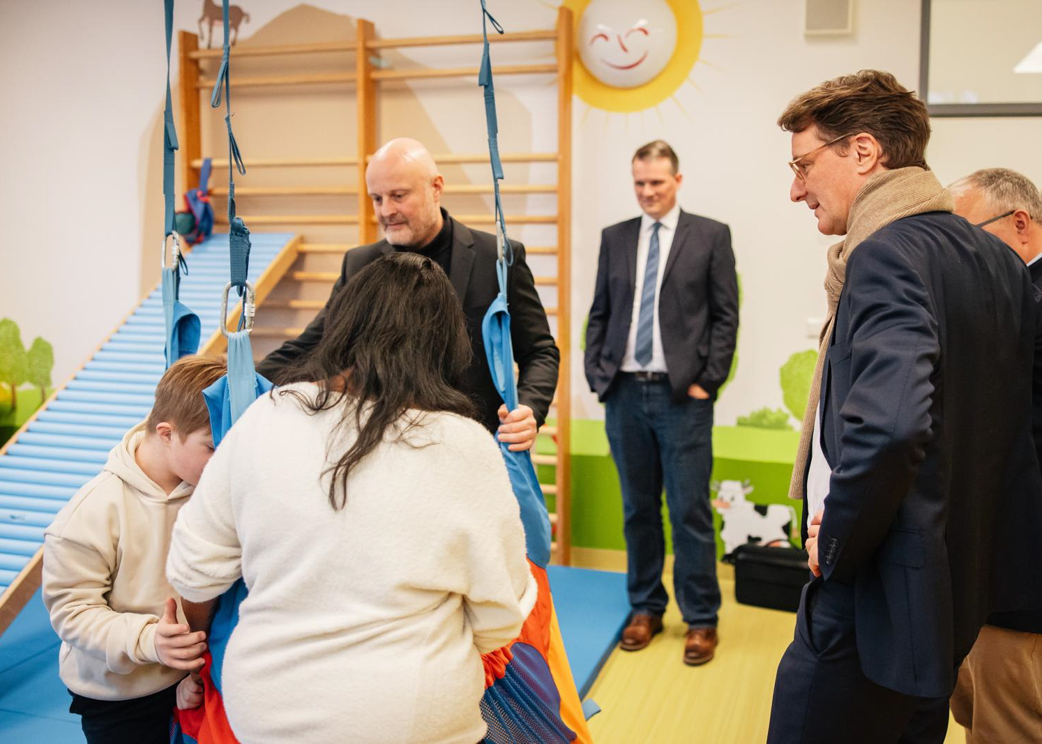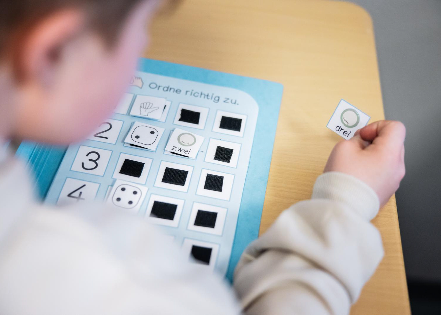 Zum Abschluss steht noch der neue TEACCH-Raum auf dem Programm. Stolz zeigt Vincent, wie man eine Arbeitsmappe bearbeitet. Die Gäste sind beeindruckt – völlig zu Recht. Vincent macht das großartig.