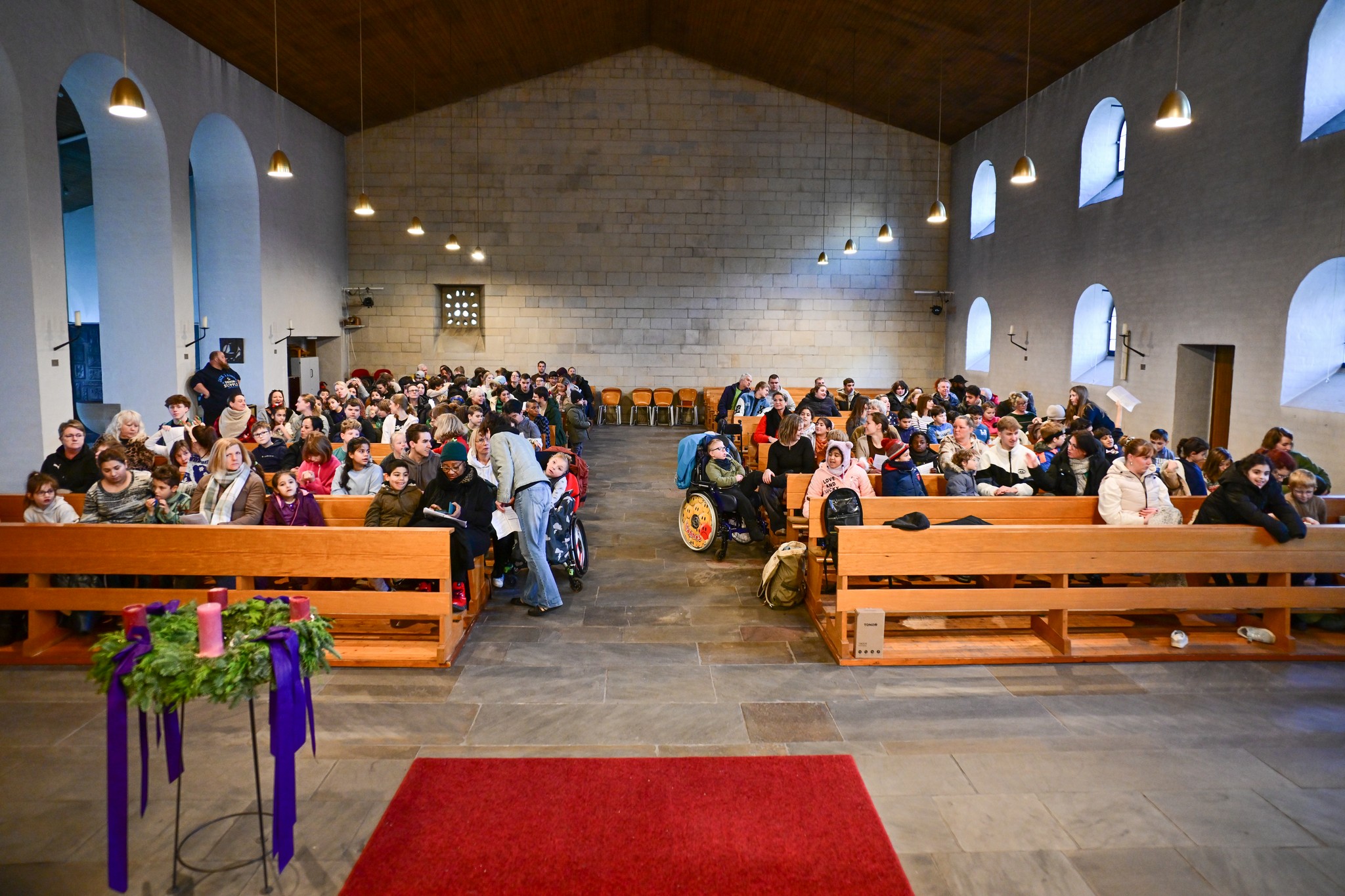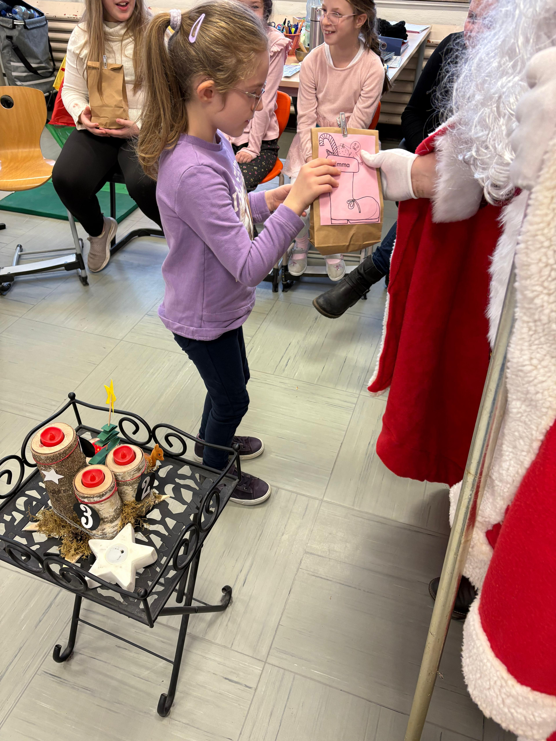 Zum feierlichen Jahresabschluss versammelte sich unsere Schulgemeinschaft zum traditionellen Weihnachtsgottesdienst in der Kirche des Ursulinenklosters. In einem festlichen Rahmen gestalteten die Schülerinnen und Schüler, besonders aus den Unterstufen, den Gottesdienst mit kleinen Aktionen Texten und musikalischen Beiträgen. In vielen Gesichtern spiegelte sich die freudige Erwartung auf das Weihnachtsfest wider und die besondere Stimmung dieses Moments war deutlich spürbar. Im Anschluss lud der Schulhof zum gemeinsamen Verweilen ein. Bei frisch gebackenen Waffeln und warmem Kinderpunsch entstanden viele fröhliche Begegnungen. Zahlreiche Bastelangebote boten Raum für Kreativität und gemeinsames Tun. Ein besonderer Höhepunkt war der Besuch des Weihnachtsmanns, begleitet von seinem Engelchen. Mit viel Zeit und Aufmerksamkeit überreichte er den Schülerinnen und Schülern der Schule ein kleines Geschenk und sorgte so für strahlende Augen und unvergessliche Momente. Ein gelungener Abschluss eines ereignisreichen Jahres getragen von Gemeinschaft Wärme und weihnachtlicher Freude.