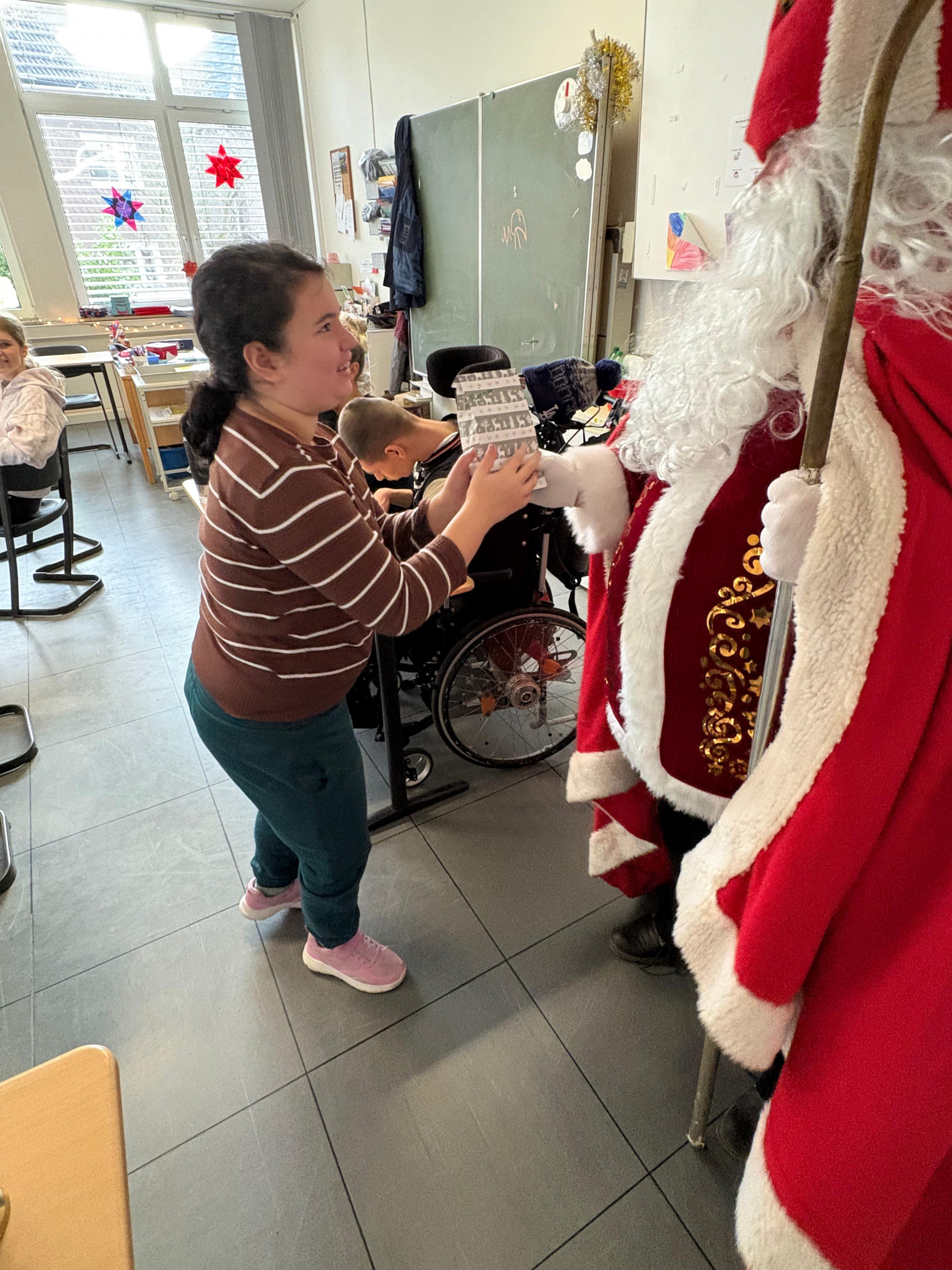 Am Freitag, dem 5. Dezember, bekam die Haldenwangschule Besuch vom Nikolaus. Schon am Morgen war die Freude bei den Kindern spürbar. Mit einem freundlichen Klopfen trat er in die Klassen und beschenkte die Schülerinnen und Schüler. Leuchtende Augen, staunende Gesichter und ein kleines Stück vorweihnachtlicher Magie begleiteten seinen Rundgang durch die Schule.